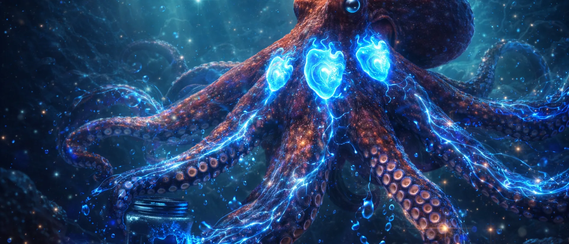 Factual details regarding octopus anatomy (three hearts, hemocyanin, neural distribution in arms) are well-documented in peer-reviewed marine biology literature.